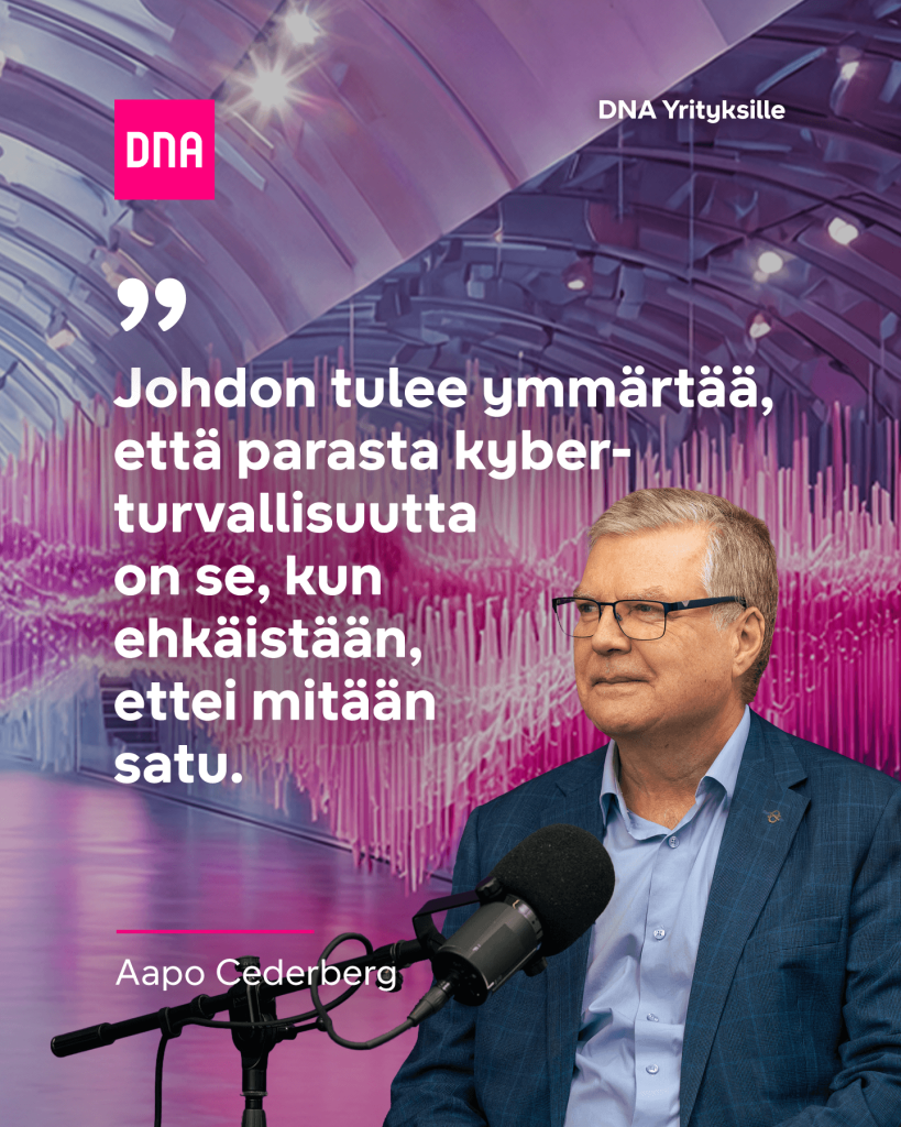 ”Tekoäly monipuolistaa kyberuhkien kenttää, ja geopoliittiset jännitteet aiheuttavat tutinaa myös yritysjohtajien saappaissa. Kyberturvan vastuu on lopulta yritysjohdon harteilla, mutta myös henkilöstö on saatava talkoisiin mukaan. Tässä jaksossa tietoturvan syväosaajavat pohtivat, miksi ajantasainen tilannekuva kyberturvallisuudesta on johdolle elintärkeä ja miksi tietoturvavalvomopalvelu on kallisarvoinen apuri uhkien havaitsemisessa.”