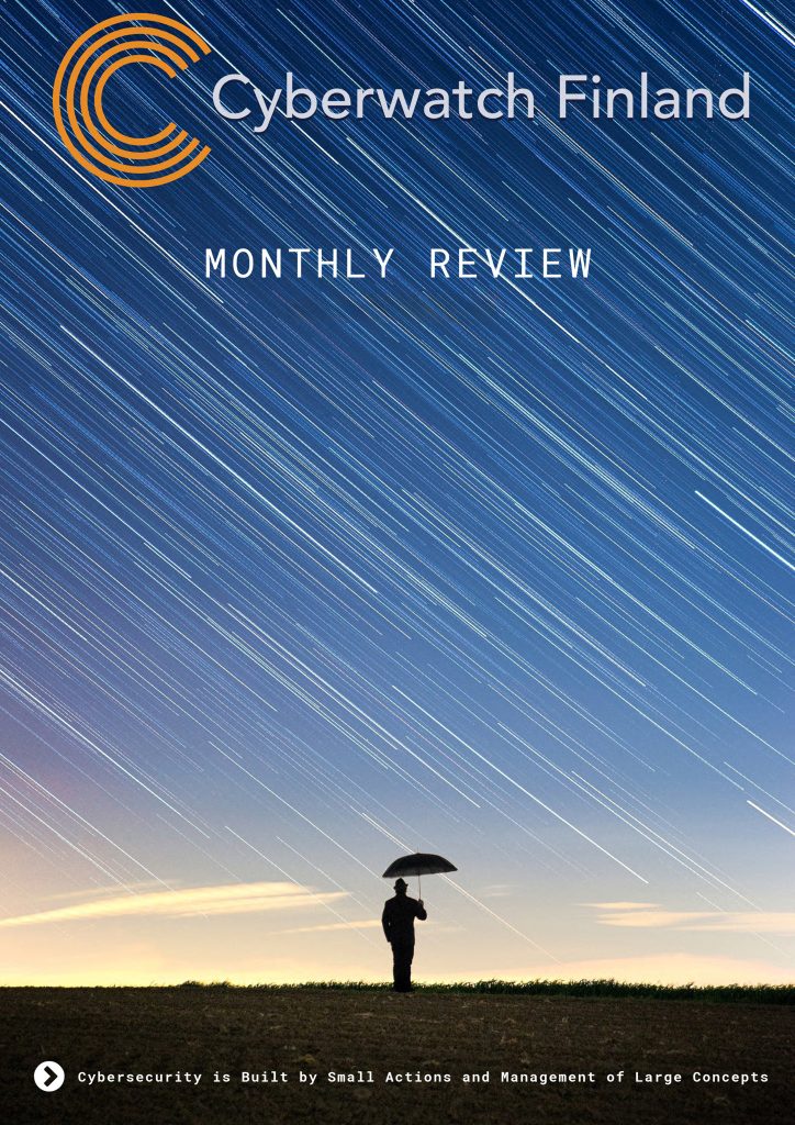 The monthly review examines the most significant cyber events, phenomena, trends and their interdependencies of the previous month, tying them into a broader framework. The monthly review is divided into three parts: the most significant cyber evens of the month; phenomena that should be highlighted and; entities whose development is worth following. With the help of the monthly review, it is possible to get a deeper insight into how the events of the cyber world affect society and the operational environment. The monthly reviews are published 12 times a year in Finnish and English.